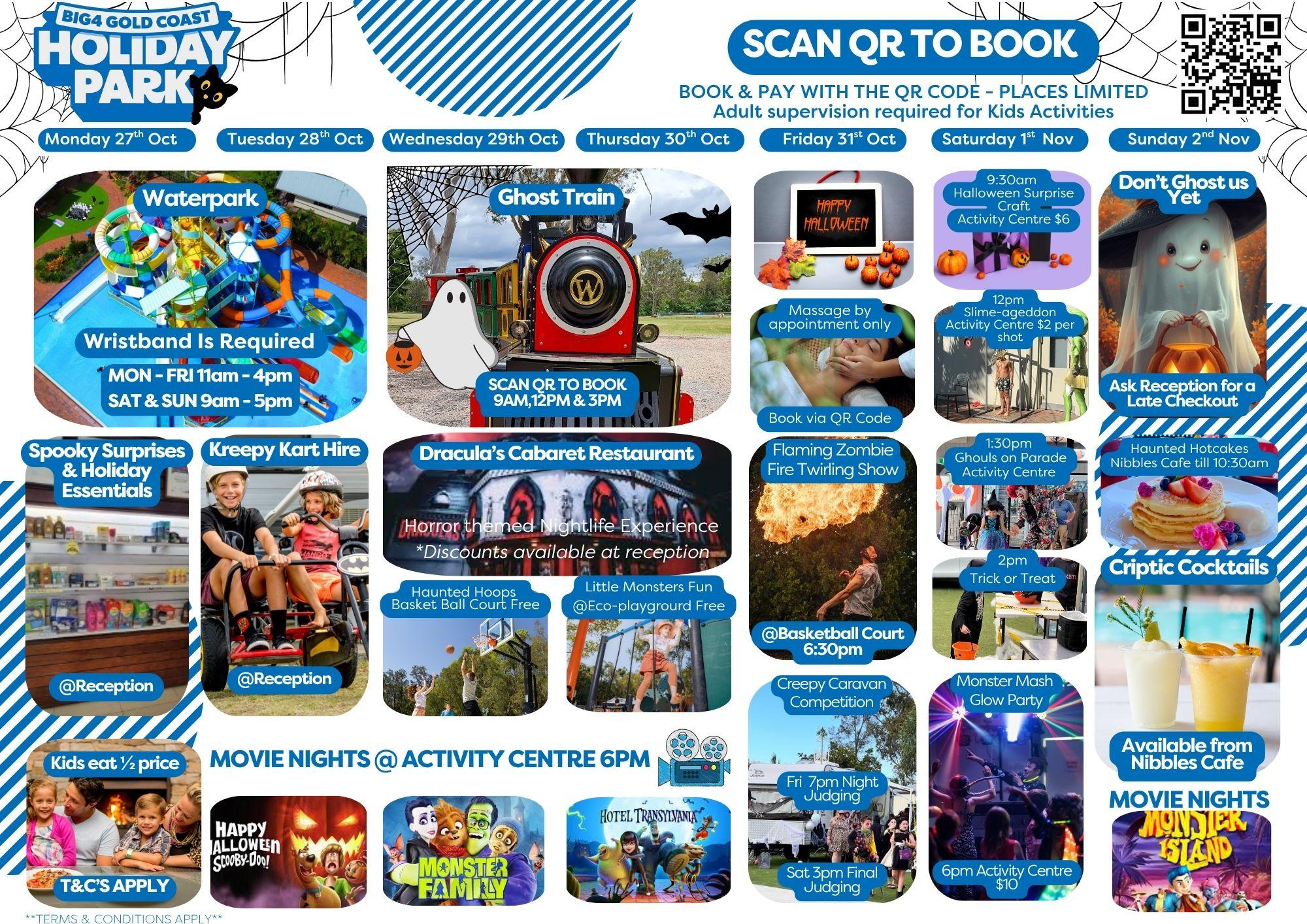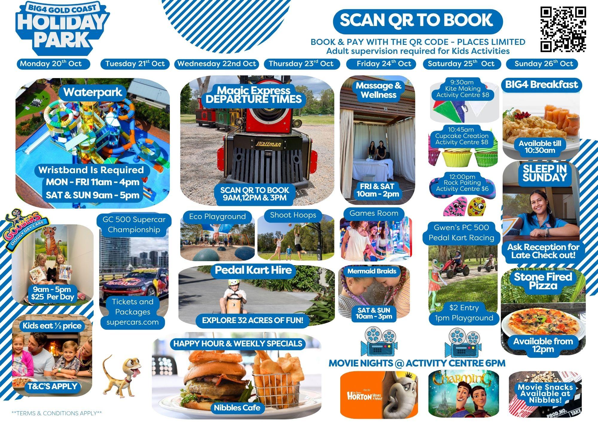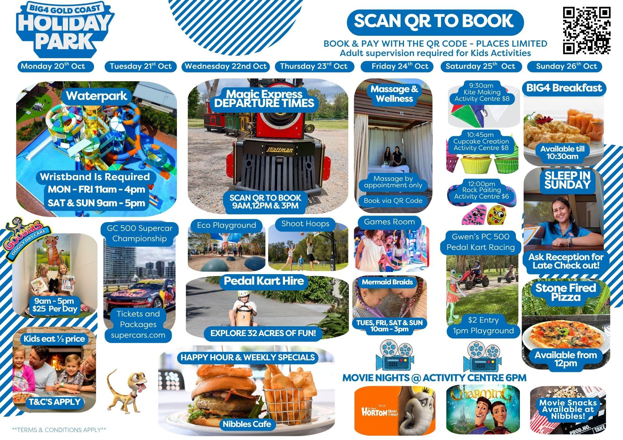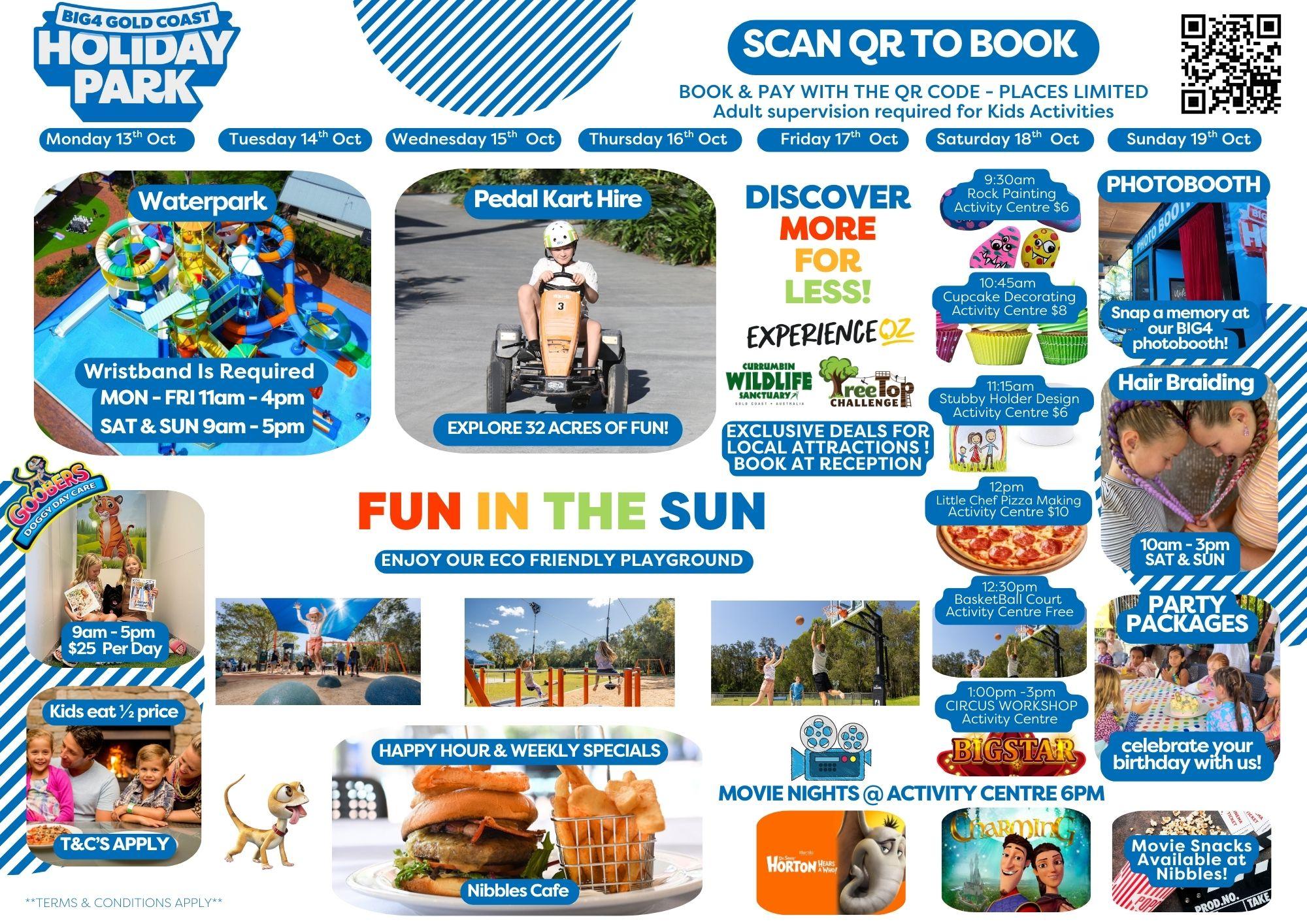 BIG4 Gold Coast Holiday Park has a range of great activities for the kids throughout the year. From arts and crafts, to games, nachos and pizza making, cake decoration, movie nights, and much more.